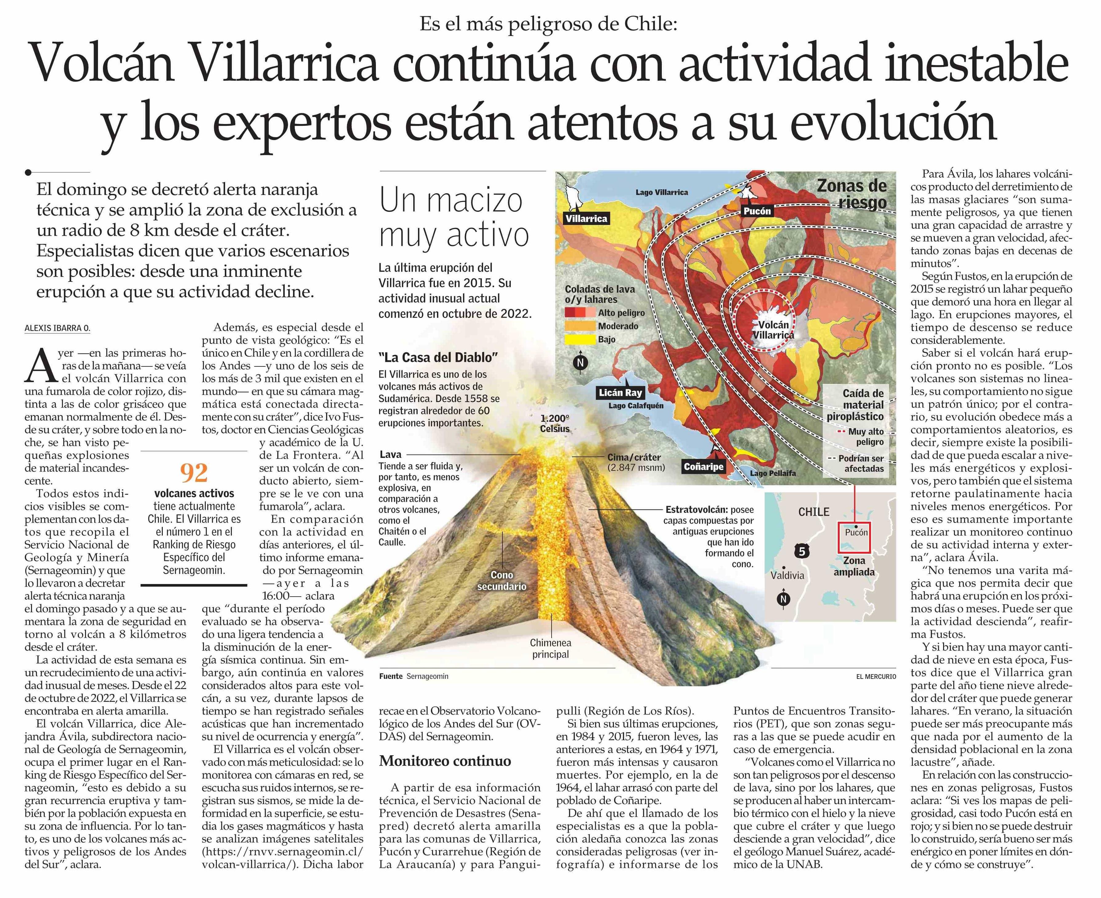 UFRO en la Prensa: Académico UFRO entrega recomendaciones ante la actual situación de alerta que vive el Volcán Villarrica.