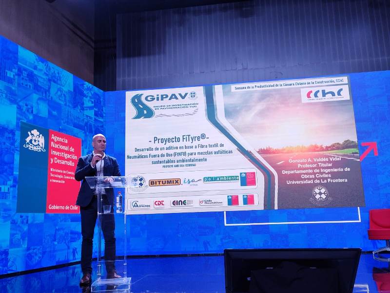 En el marco de la Semana de la Productividad 2023, organizada por la Cámara Chilena de la Construcción (CChC), se desarrolló un conversatorio sobre casos de éxito de vinculación Ciencia – Empresa en la industria enfocada en I&D, instancia en la que se presentó el proyecto FiTyre, el cual lidera la Universidad de La Frontera (UFRO) junto a las empresas asociadas Bitumix, Polambiente e ISA Intervial.