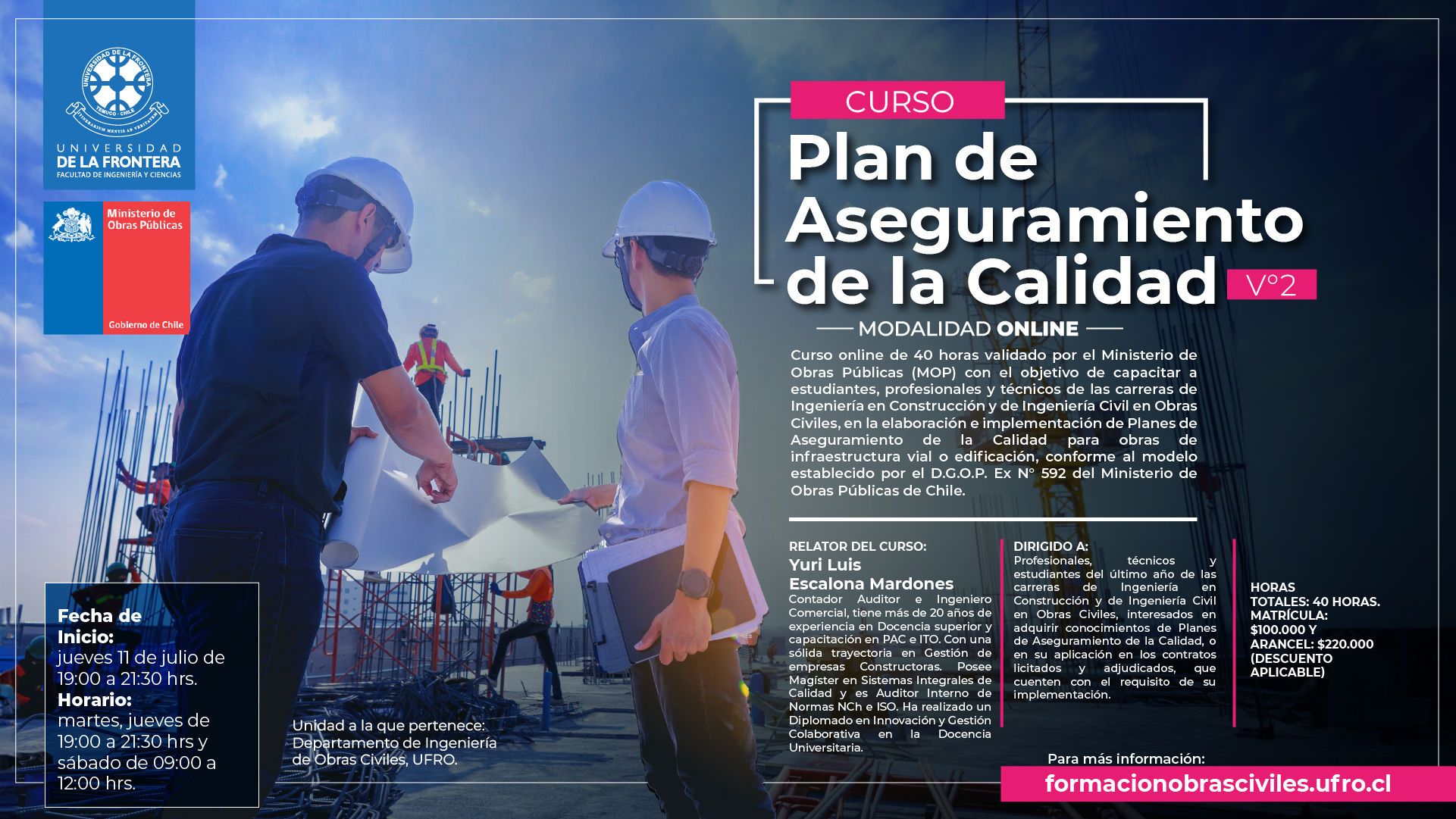 Capacitar a estudiantes en la elaboración e implementación de planes de aseguramiento de la calidad para obras de infraestructura vial o edificación, conforme al modelo establecido por el D.G.O.P. Ex N° 592 del Ministerio de Obras Públicas de Chile.